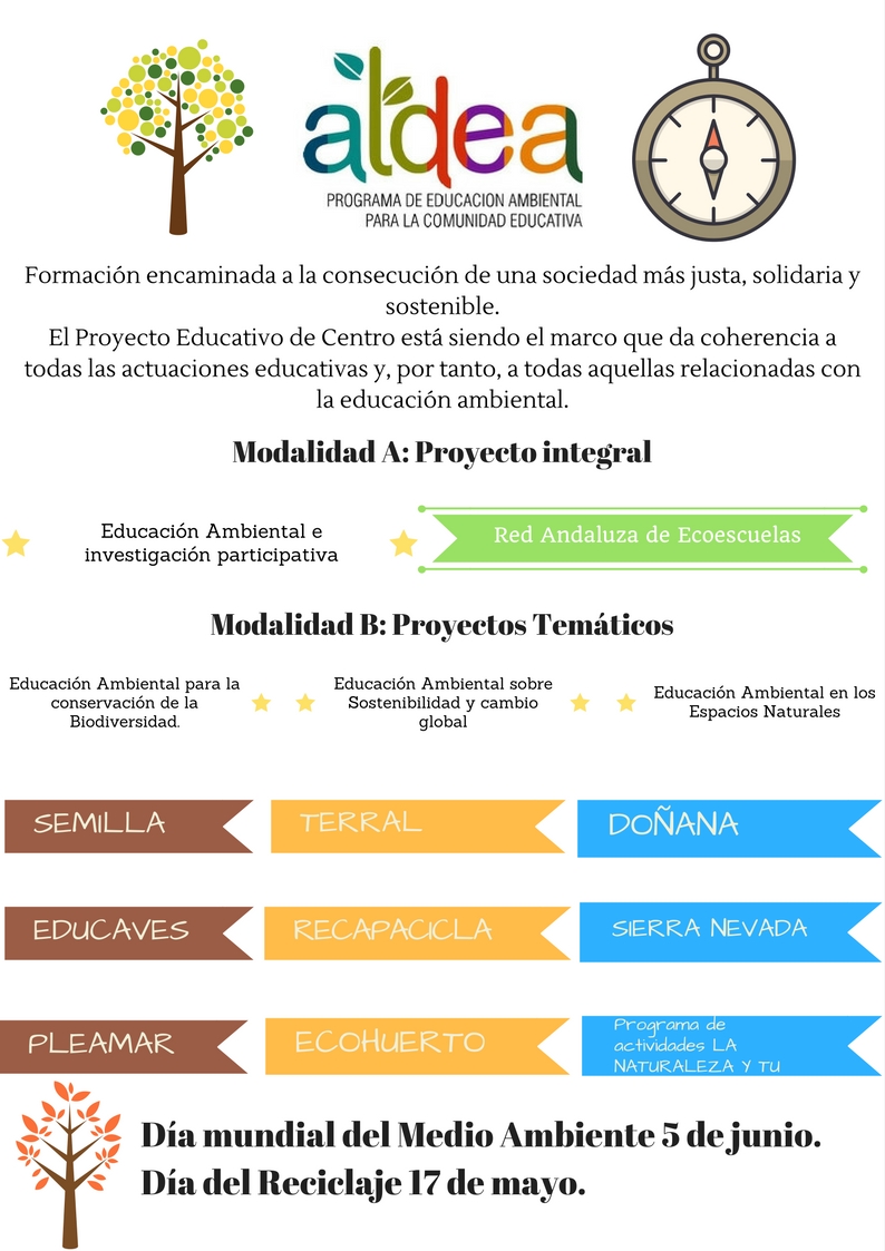 Para ampliar la información sobre el Programa ALDEA de la Junta de Andalucía puede visitar los siguientes enlaces, en ellos encontrará el catálogo de 2021-2022 ALDEA y la Web de la Consejería de Educación para el Programa de Educación Ambiental para la Comunidad Educativa