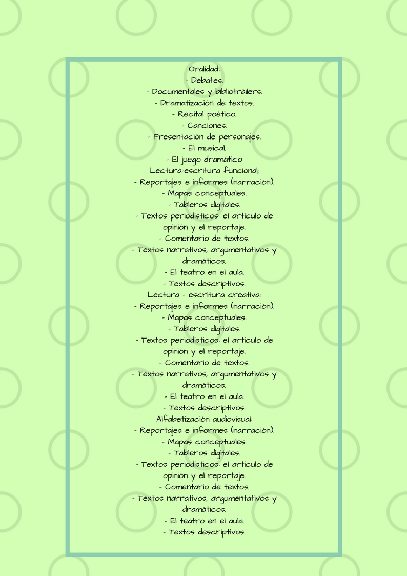 - Finalidades: enriquecimiento léxico, fomento lector, desarrollo del lenguaje oral, fomento del uso de la biblioteca escolar...