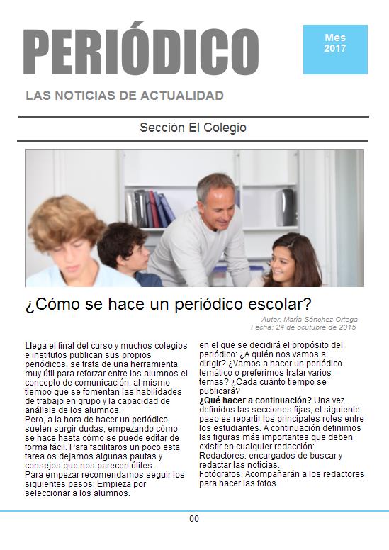 - Título: "Extra - extra"- Descripción: Cada alumno y alumna deberá escribir una noticia de carácter informativo inventada, la única norma es que debe ser sorprendente y atractiva.- Finalidades: desarrollo del hábito escritor, creatividad, motivación...- Título: "Fuentes de primera calidad"- Descripción: Por medio del uso de las TIC el alumno o alumna realiza búsquedas de información en portales y bases de datos adaptados para su nivel y ciertas, como por ejemplo Procomún.- Finalidades: curación de contenido, desarrollo de las TIC, búsqueda de información...- Título: "Reunión de trabajo"- Descripción: En clase en gran grupo decidimos a quién se le asignará cada parte del periódico, columnistas, deportes, entretenimiento, literatura, entrevistas, y nos separaremos por parejas y tríos. También el nombre de nuestro periódico y cómo lo promocionaremos.- Finalidad: organización de la clase, estructuración de tarea, trabajo en equipo, colaboración...